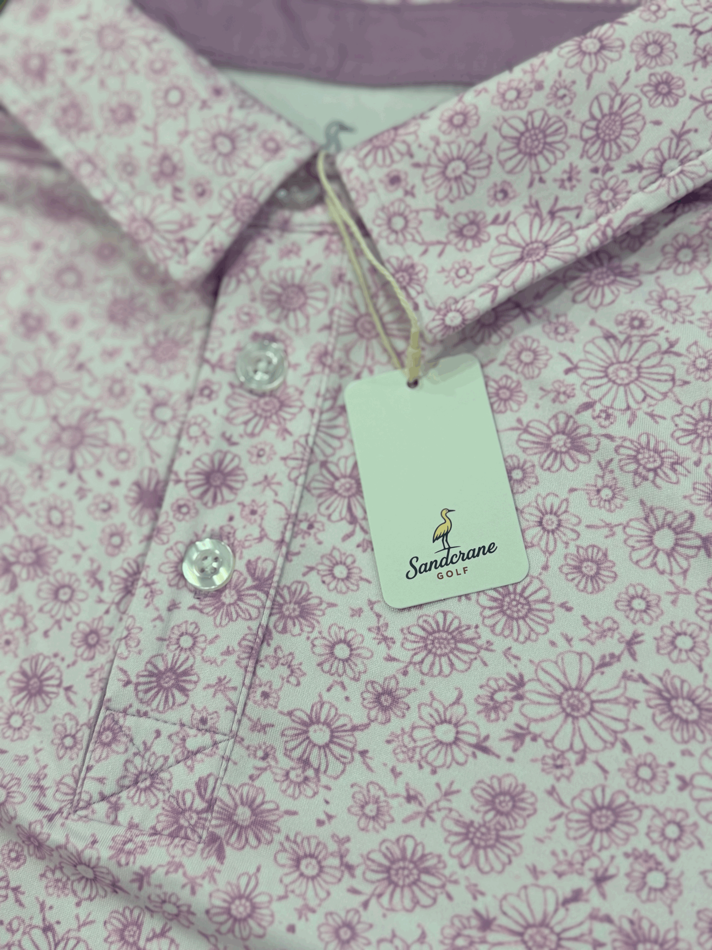 Soft floral texture, clean structure, and a fresh purple palette—this is a standout done the Sandcrane way.